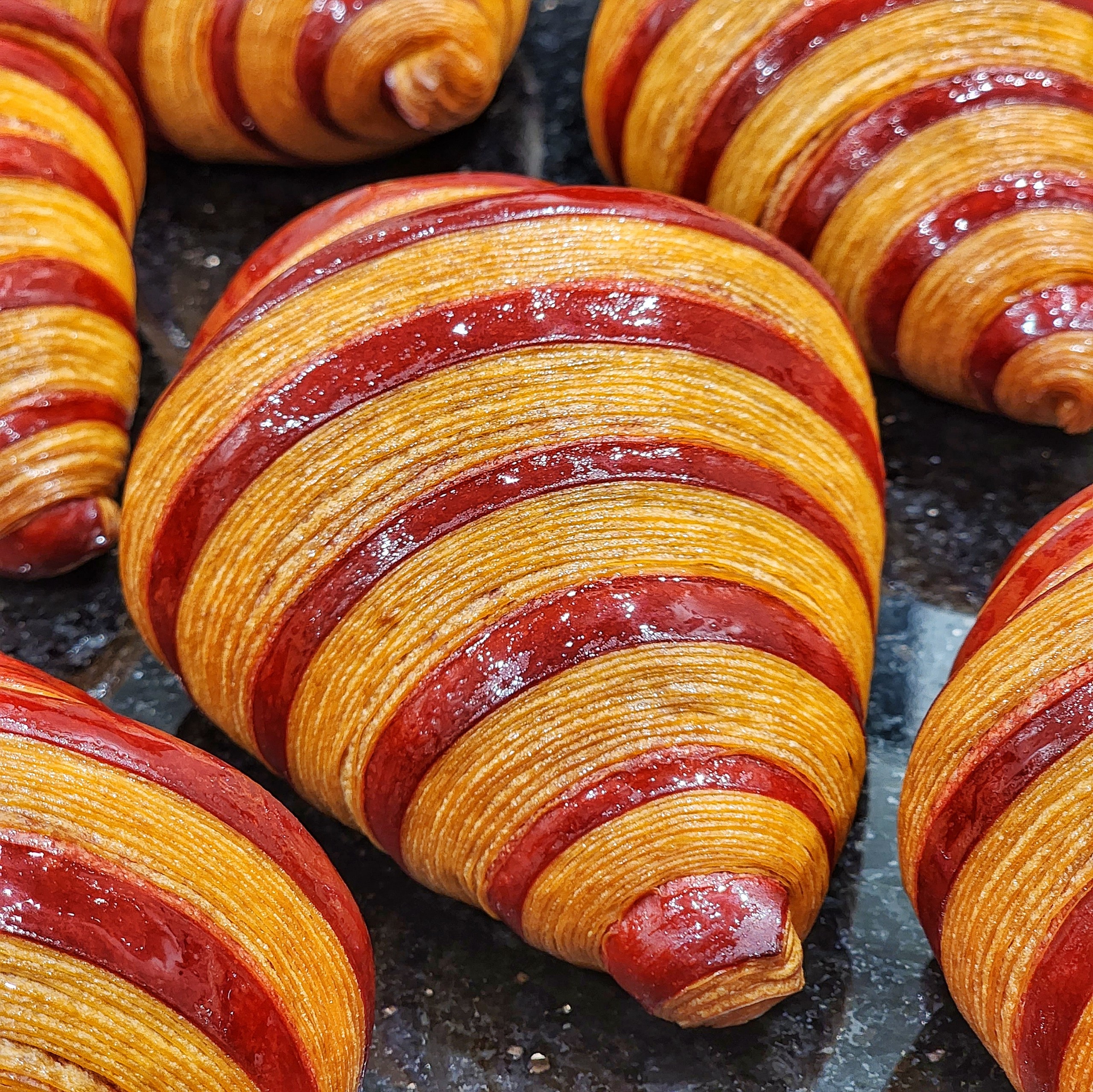 - Croissant cầu vồng (nhân cream cheese dâu tây)
